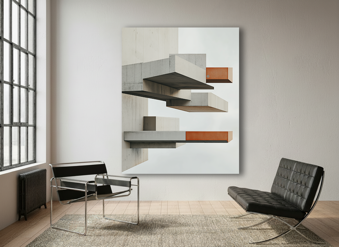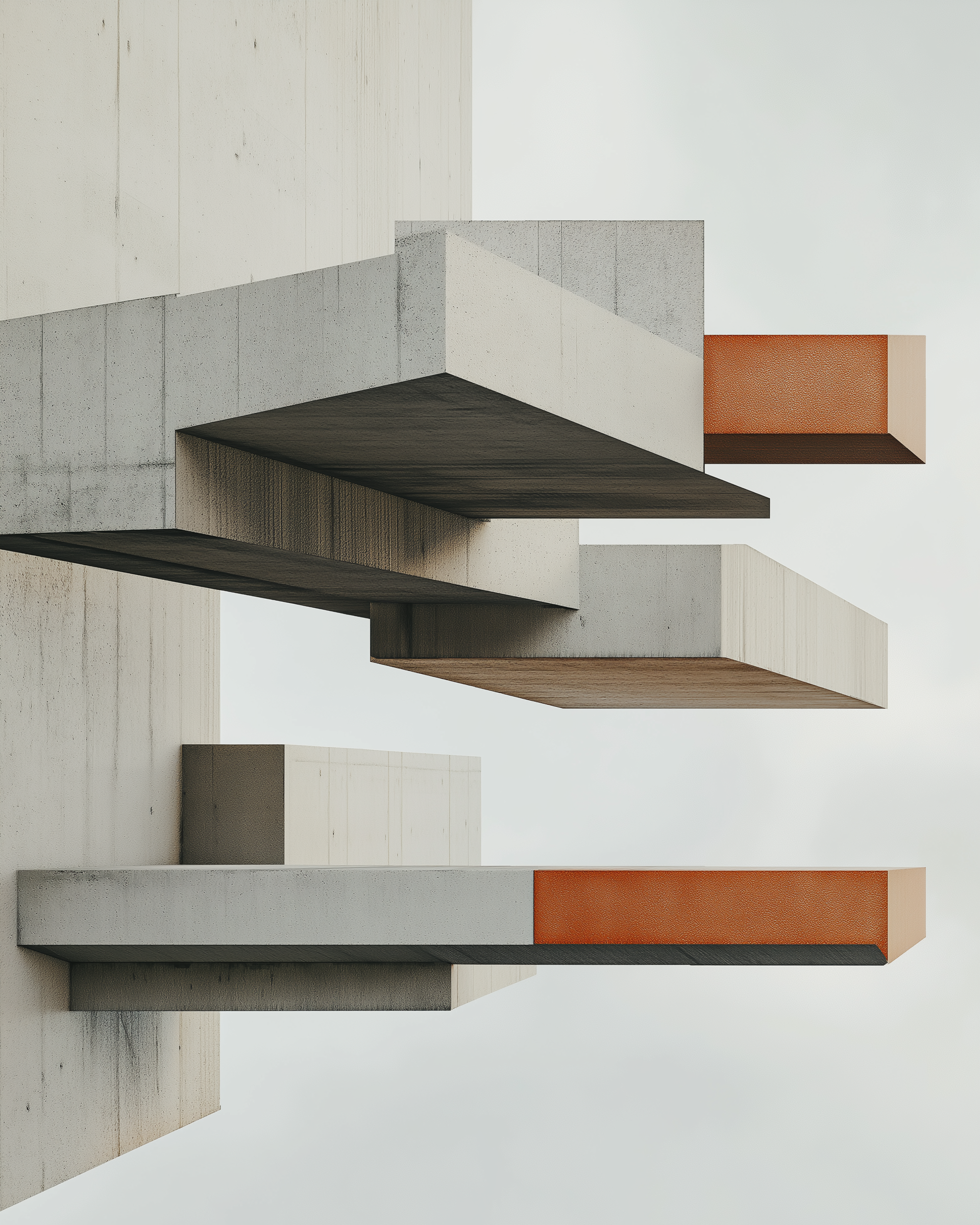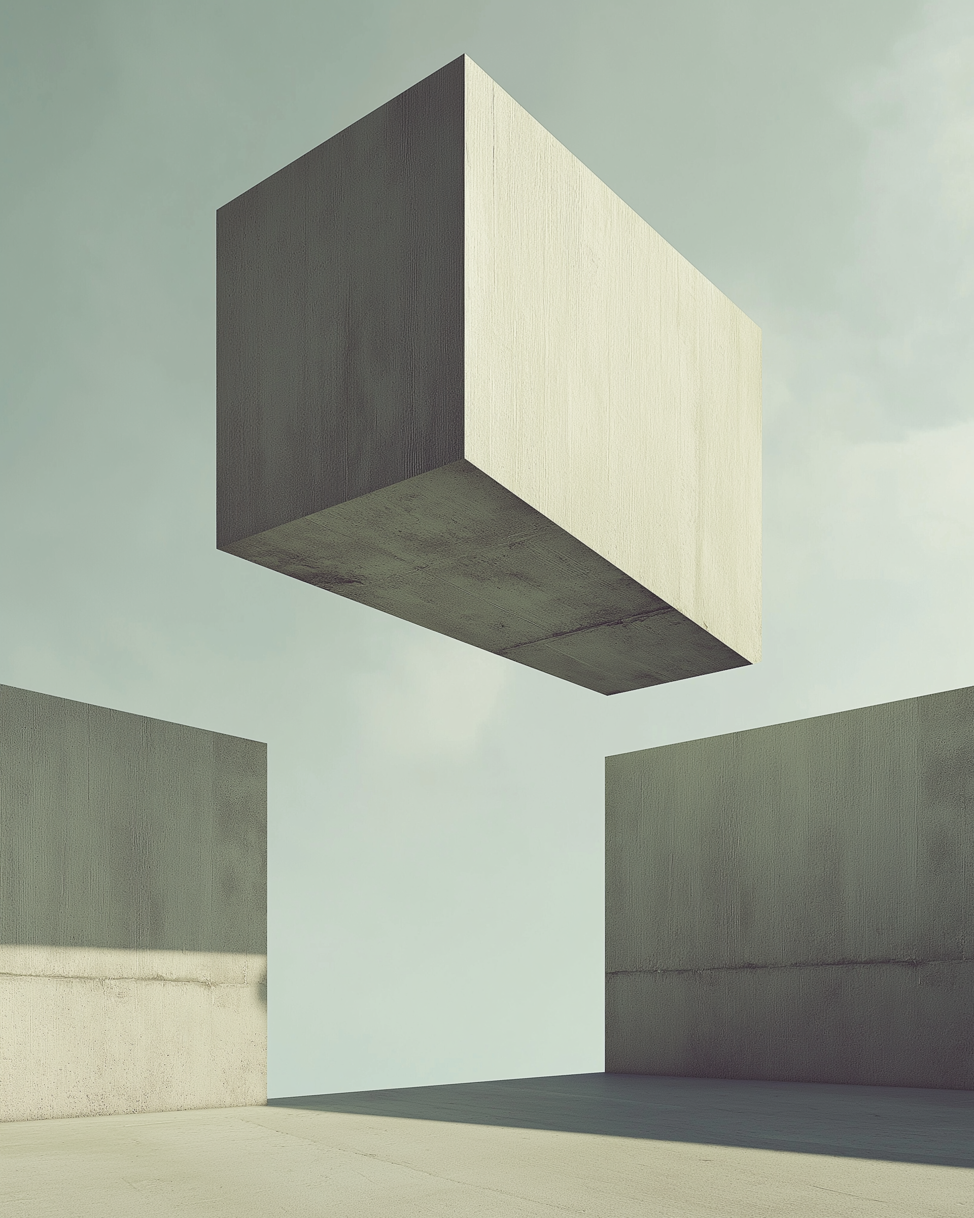 "Tectonic Silence" untersucht den Moment zwischen Stabilität und Zerfall. Monumentale, reduzierte Betonformen stehen isoliert im Raum – präzise, kontrolliert, scheinbar unangreifbar. Ein einzelner Bruch verschiebt dieses Gleichgewicht.