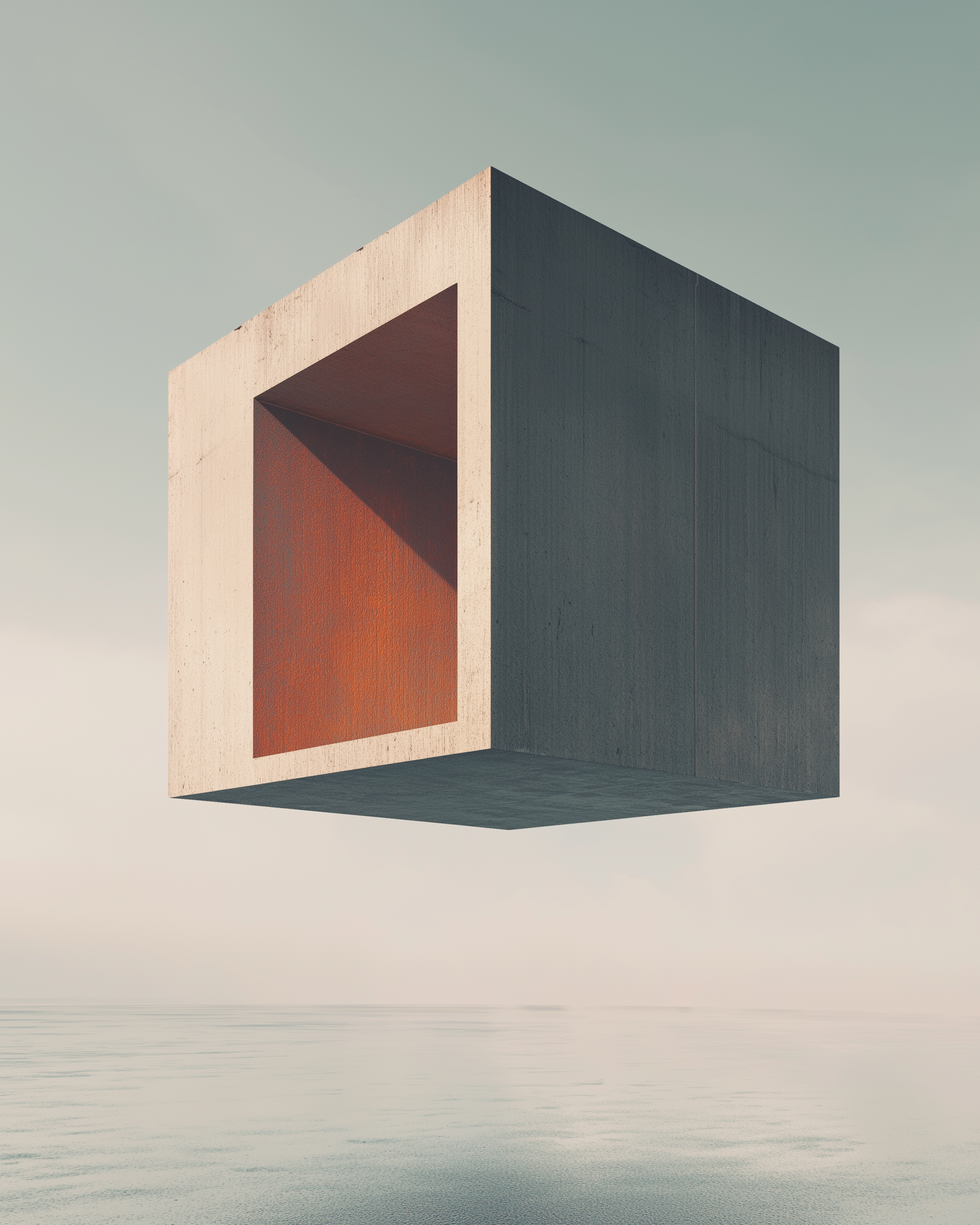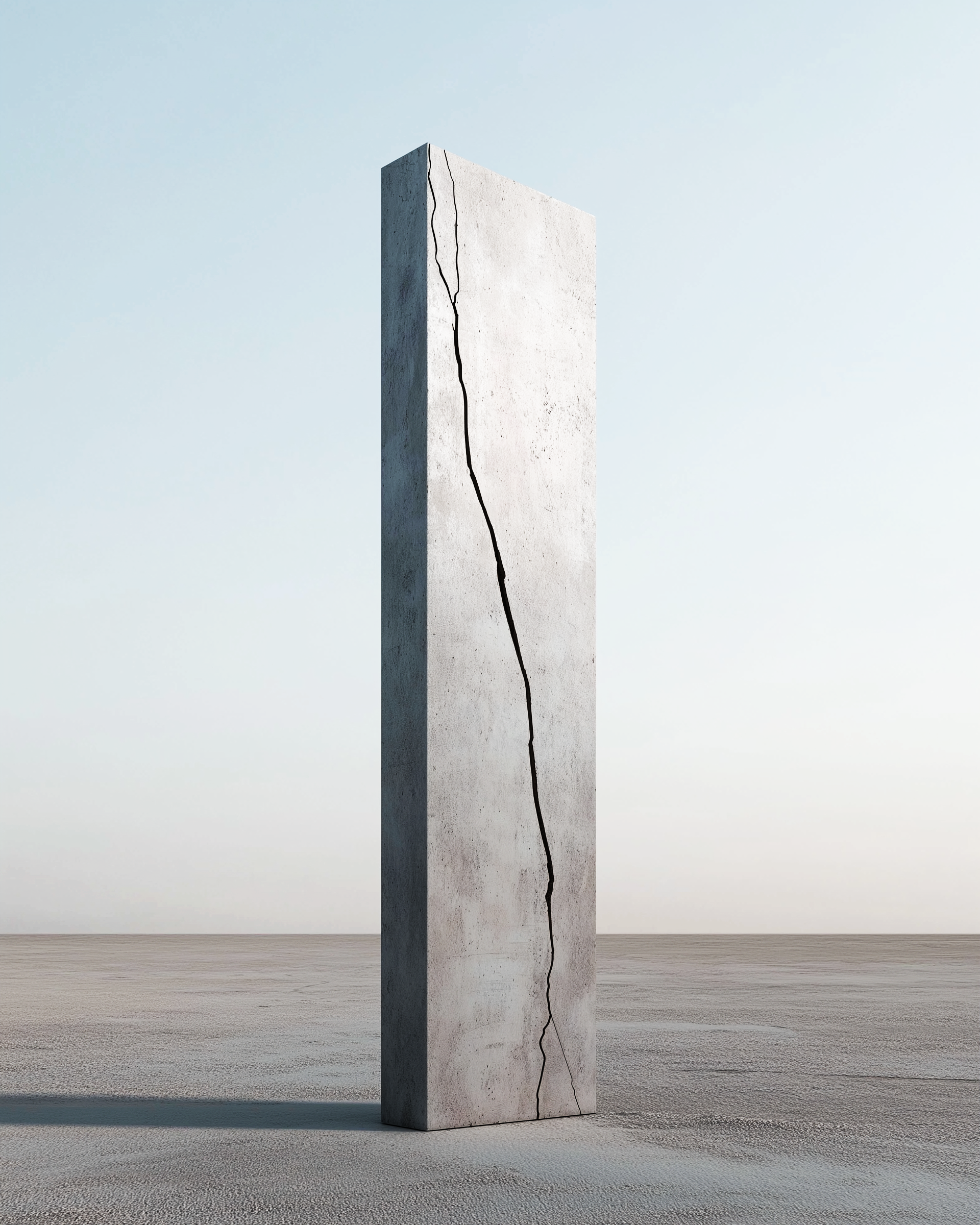 "Tectonic Silence" explores the moment between stability and decay. Monumental, minimalist concrete forms stand isolated in space – precise, controlled, seemingly invulnerable. A single fracture shifts this equilibrium.